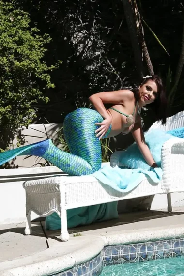 Mermaid cosplayer and anal-loving whore Adirana Chechik posing by the pool